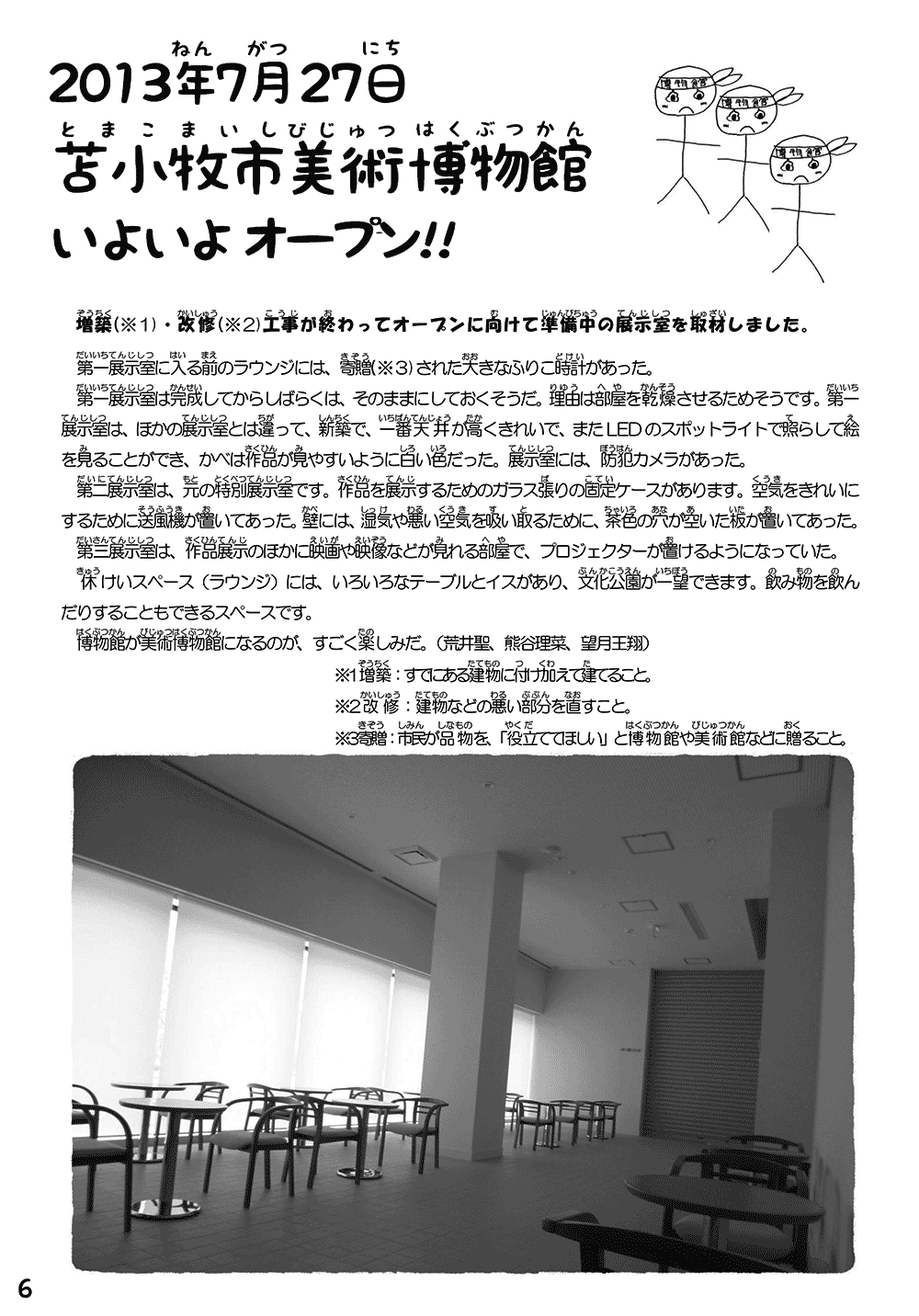 『びとこま』は、苫小牧市内小中学校に通う16名の記者たちと樽前arty+が市内外の文化芸術情報を取材し、苫小牧の美術館の魅力を伝える広報紙です。