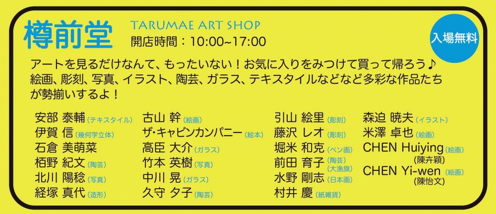 ![樽前arty2015|スケジュール|NPO法人 樽前arty+ [タルマエ アーティ プラス]](https://tarumae.com/elements/logo.jpg)